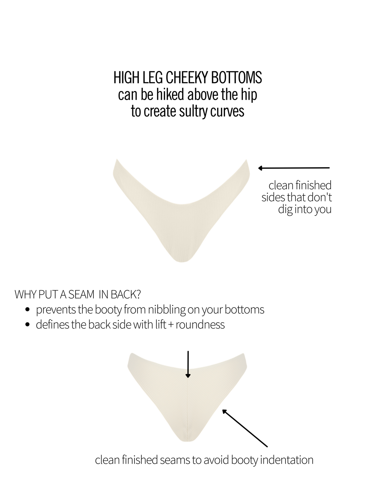A fun, cheeky cut, bottom — wear high on the hip bone or low as a hipster. Designed to stay in place and elongate legs — a piece so flattering, it’s our best seller.