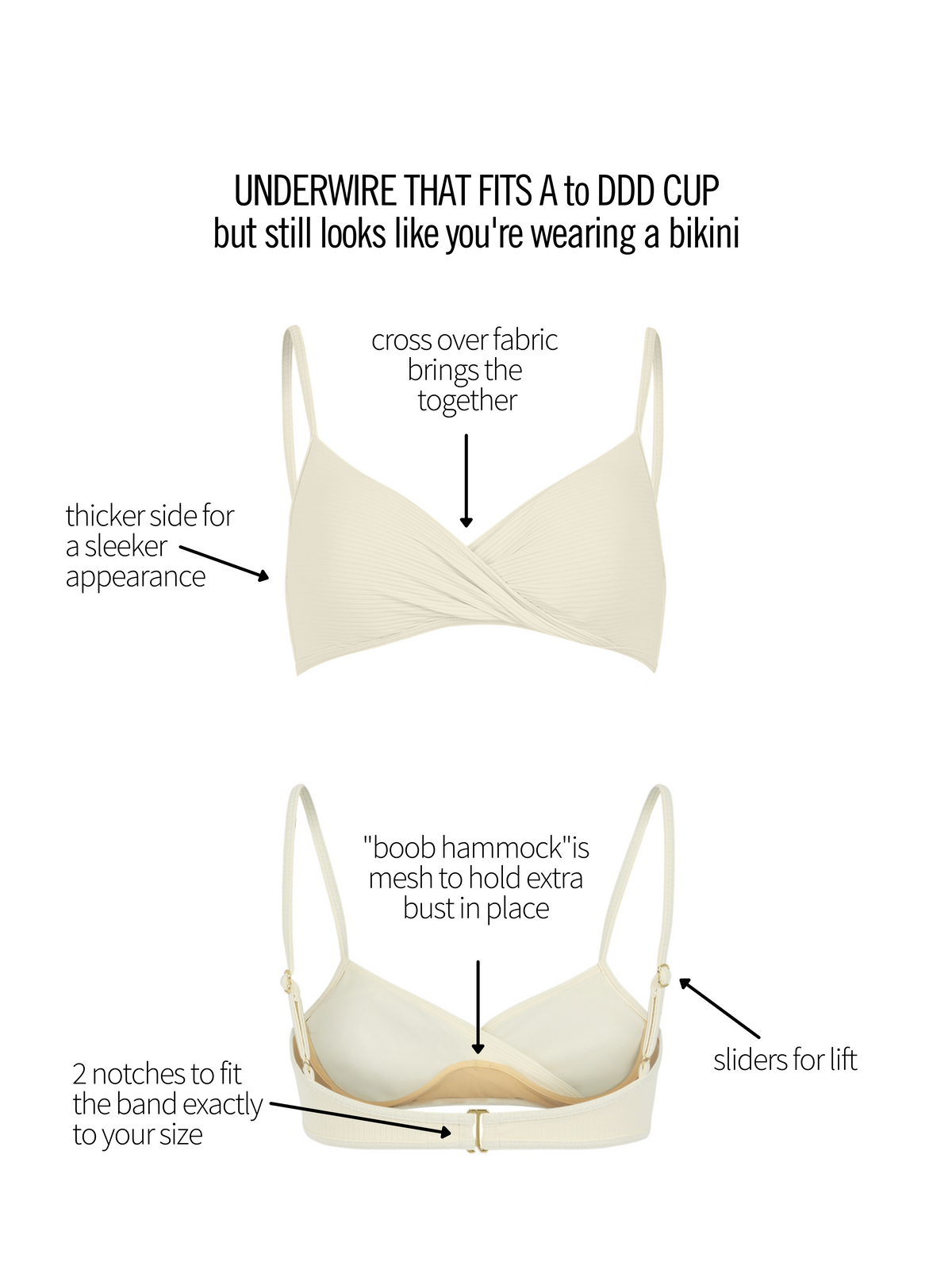 Sweet and minimal, this overlap bikini brings allure to every occasion. Adjustable back clasp and straps give a personalized, supportive fit for every body type.