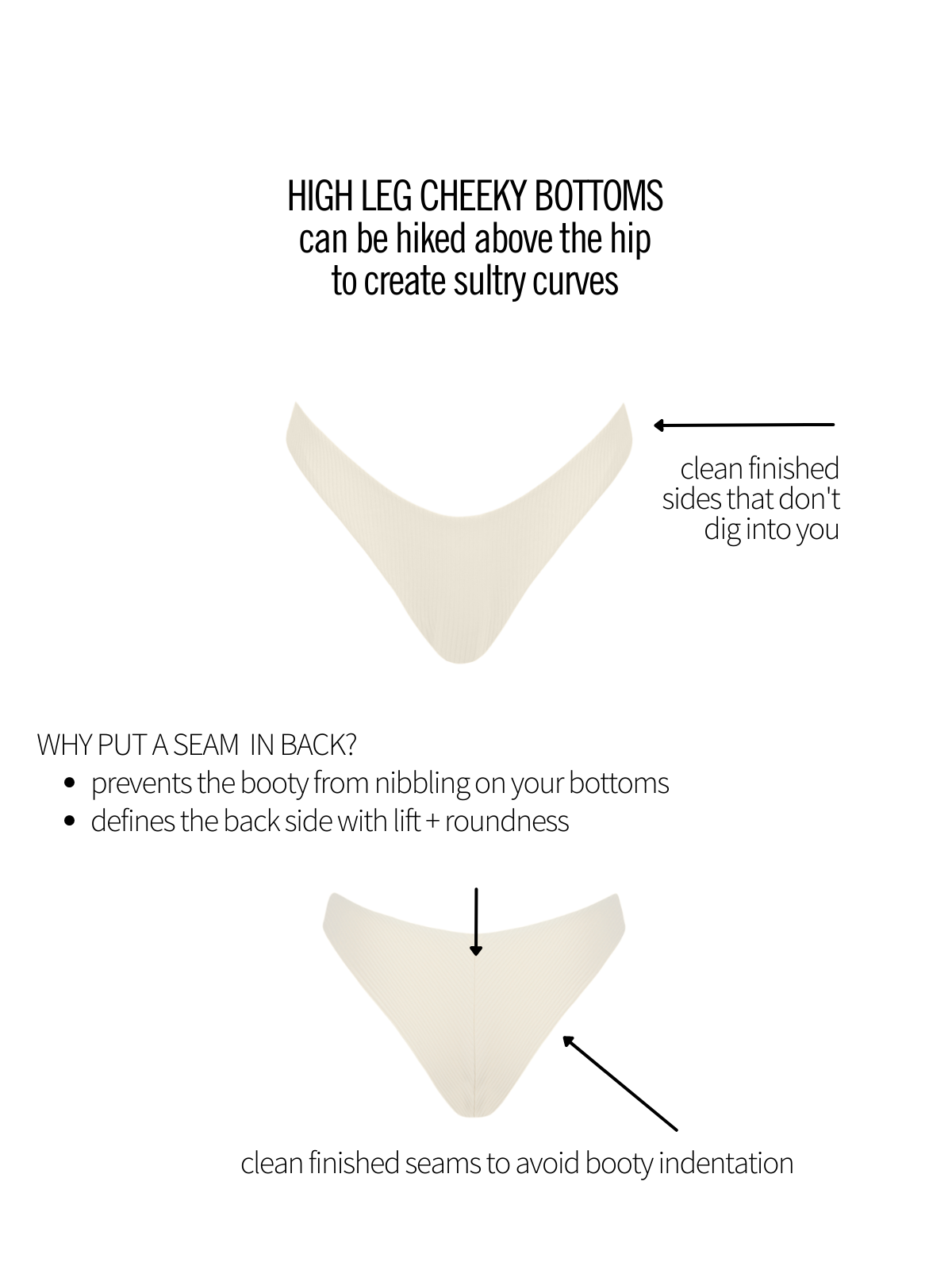A fun, cheeky cut, bottom — wear high on the hip bone or low as a hipster. Designed to stay in place and elongate legs — a piece so flattering, it’s our best seller.